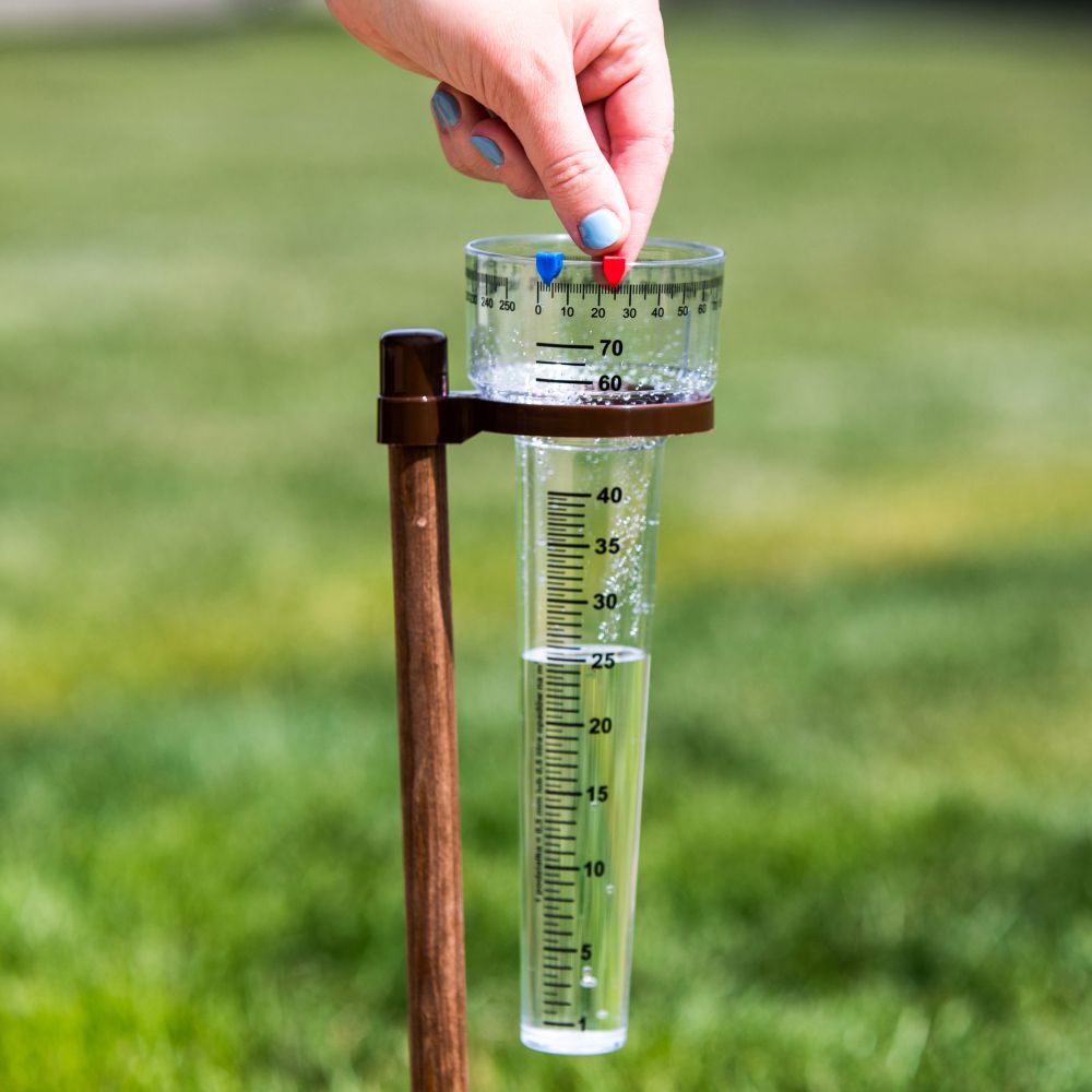 Deszczomierz PREMIUM wykonany polistyrenu z nadrukowaną pionową skalą do 40 mm/m2 z dokładnością pomiaru do 0,5 mm opadów oraz poziomą skalą sumatora. Opatentowany sumator pozwala rejestrować sumaryczny opad do 250 mm (250 l/m²) .