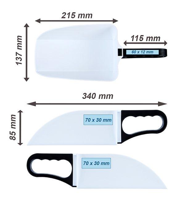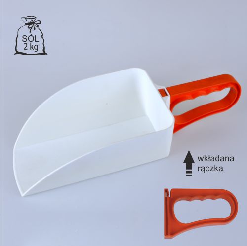 Wykonana z polipropylenu łopatka, dostępna w kilku wersjach kolorystycznych. Produkt dwuczęściowy składający się z nabieraka i uchwytu. Szufelka posiada atest do kontaktu z żywnością, służy do dozowania produktów sypkich.