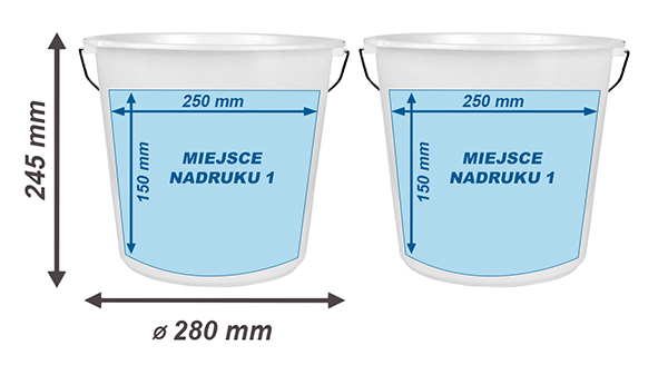 Wiadro z poręcznym uchwytem z drutu ocynkowanego oraz tłoczoną podziałką w litrach wewnątrz pojemnika. Oferujemy możliwość wykonania trwałego i spersonalizowanego nadruku metodą sitodruku na zewnętrznej powierzchni, korzystając z bogatej palety kolorystycznej PANTONE. Nasze wiadra z nadrukiem są doskonałym artykułem promocyjnym dla klientów z różnych branż. Dostępność unikatowego koloru wiadra zależy od wielkości zamówienia lub dostępności magazynowej.