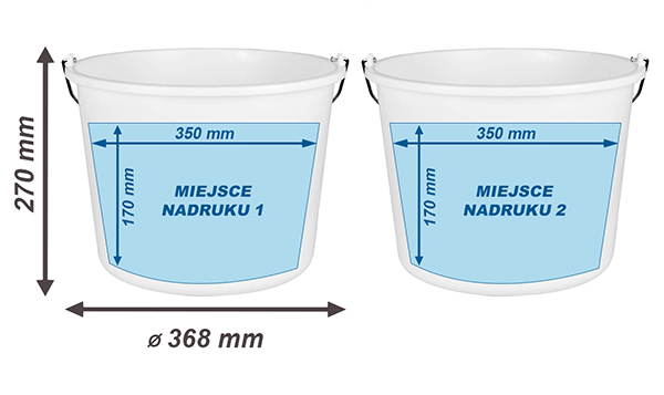 Polipropylenowe, duże wiadro o pojemności 20 l z nadrukiem logo lub hasła reklamowego to niezastąpiony w praktyce artykuł promocyjny. Nadruk serigraficzny (sitodruk) to pewność trwałości reklamy. Wiadro z nadrukiem dzięki nieograniczonym możliwościom zastosowania użytkowego jest skutecznym nośnikiem reklamy i jednocześnie wartościowym produktem przydatnym na co dzień. Wiadra są idealnym nośnikiem promocyjnym chętnie używane jako wiadra na targi, eventy, wiadra dla firm sprzątających, dla branży rolniczej i hodowlanej. Jako wiadra o mocnej konstrukcji i wytrzymałe na obciążenia są idealne dla branży budowlanej.
